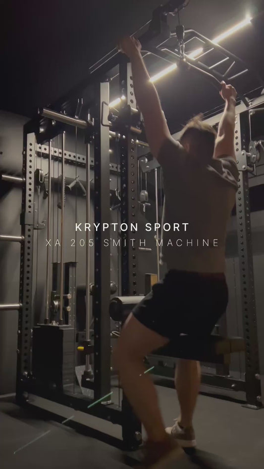 Multi-gym Krypton Sport XA-205 SMITH MACHINE con lat pulldown 1:1, 2 blocchi di peso da 110 kg, dip, peso totale 590 kg, nero opaco
