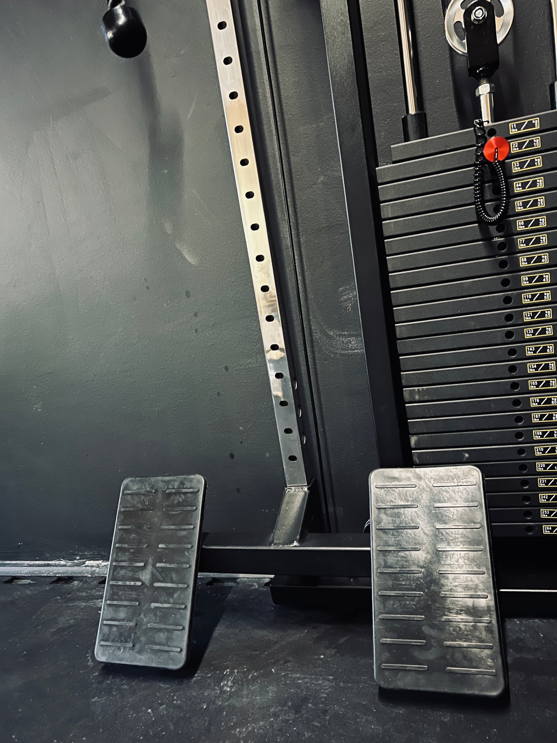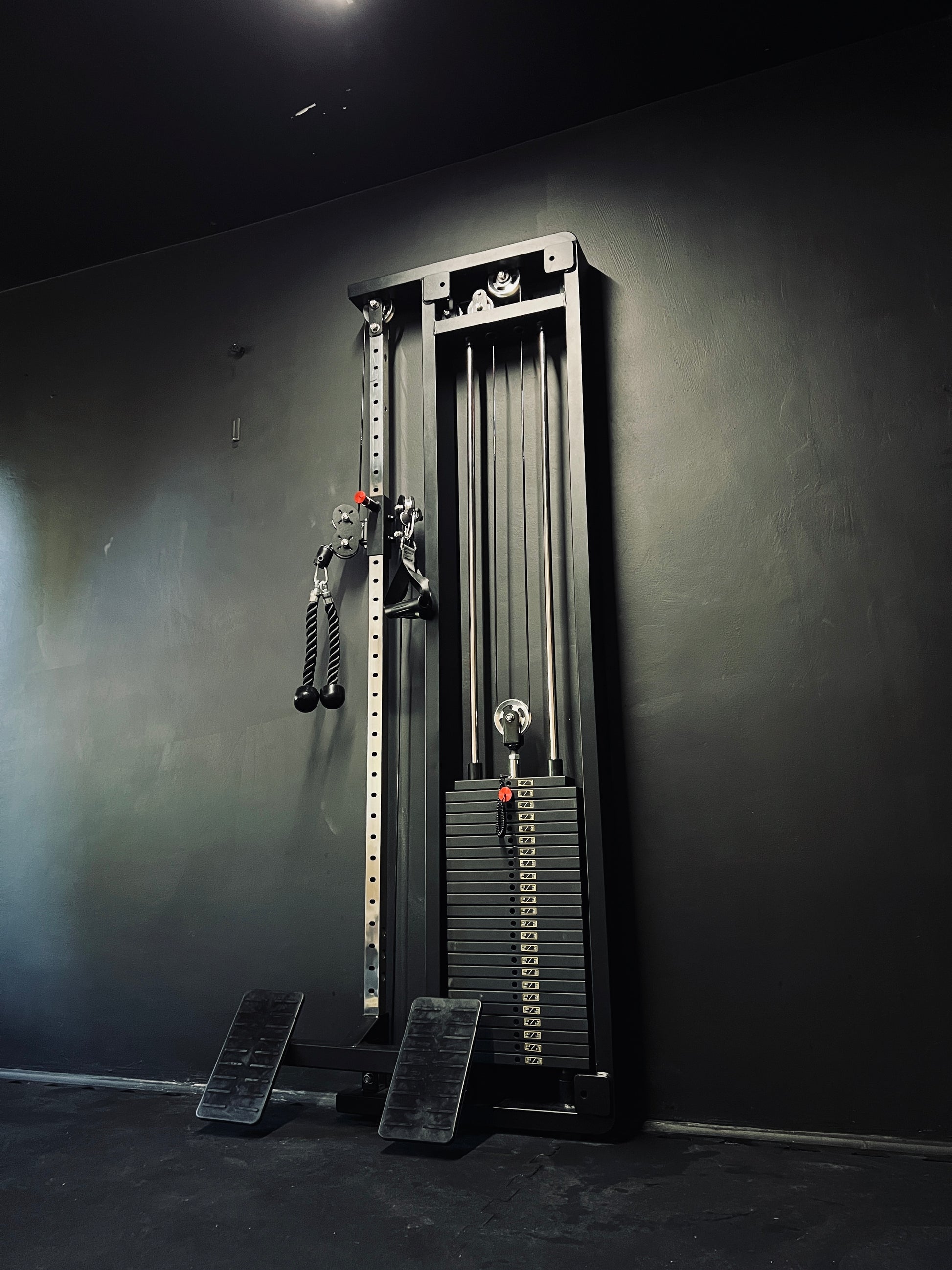 Die Maschine wird an der Wand mit vier Dübel montiert und ist eine ideale Alternative zu herkömmlichen Kabelzugmaschinen. Außerdem ist sie mit einer Beinübungstation ausgestattet, die das Rudern ermöglicht.